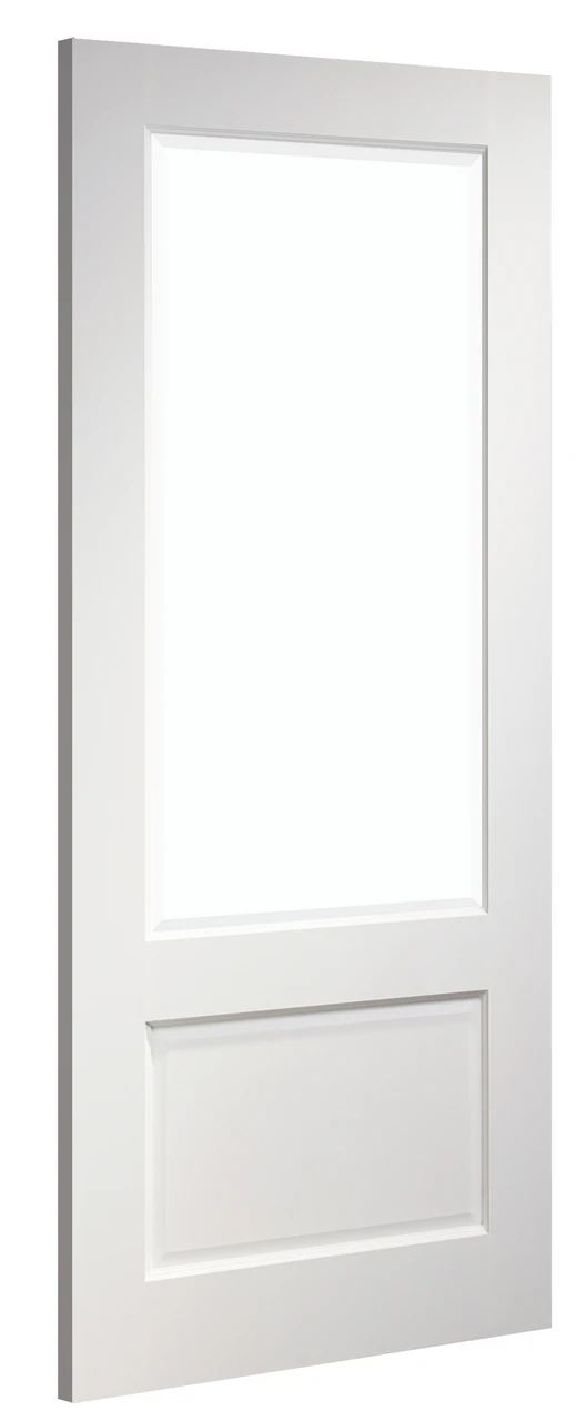 White primed and ready for the colour of your choice, this refreshingly simple door is one of our most popular products. The solid door features two panels �� the larger one in the upper two thirds of the door, and the smaller one beneath. In the glazed door, a pane of clear glass is substituted for the larger panel. Beautifully crafted bevel-cut edges add depth to this wonderfully chic door.