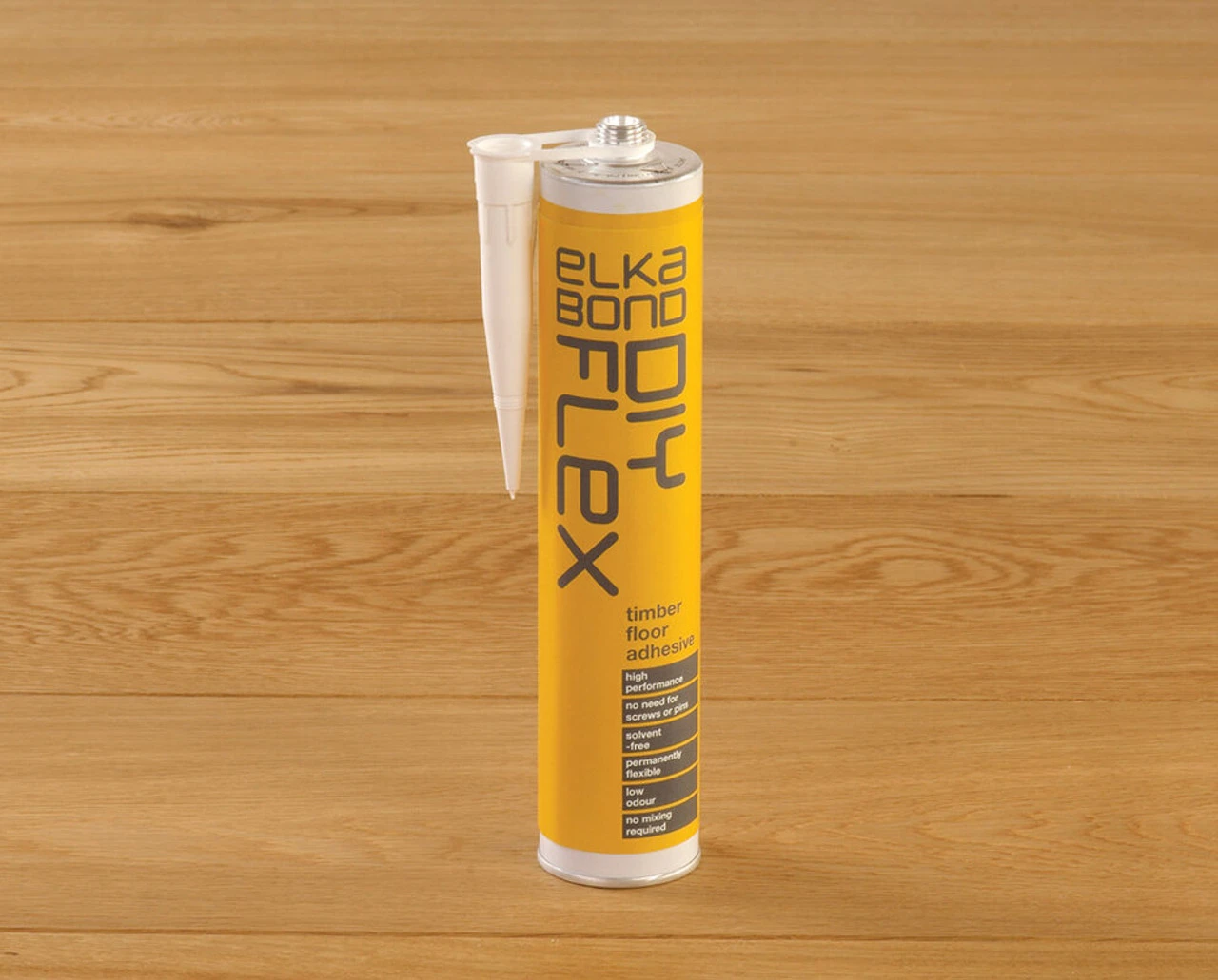 Elka Bond DIY Flex is suitable for use with solid and real wood engineered flooring. It bonds wood directly to all common sub floors and is permanently flexible to compensate for wood and sub floor movement. Elka Bond DIY Flex also has excellent sound reduction properties, providing a seamless solution on uneven surfaces by filling gaps prior to laying the new flooring.