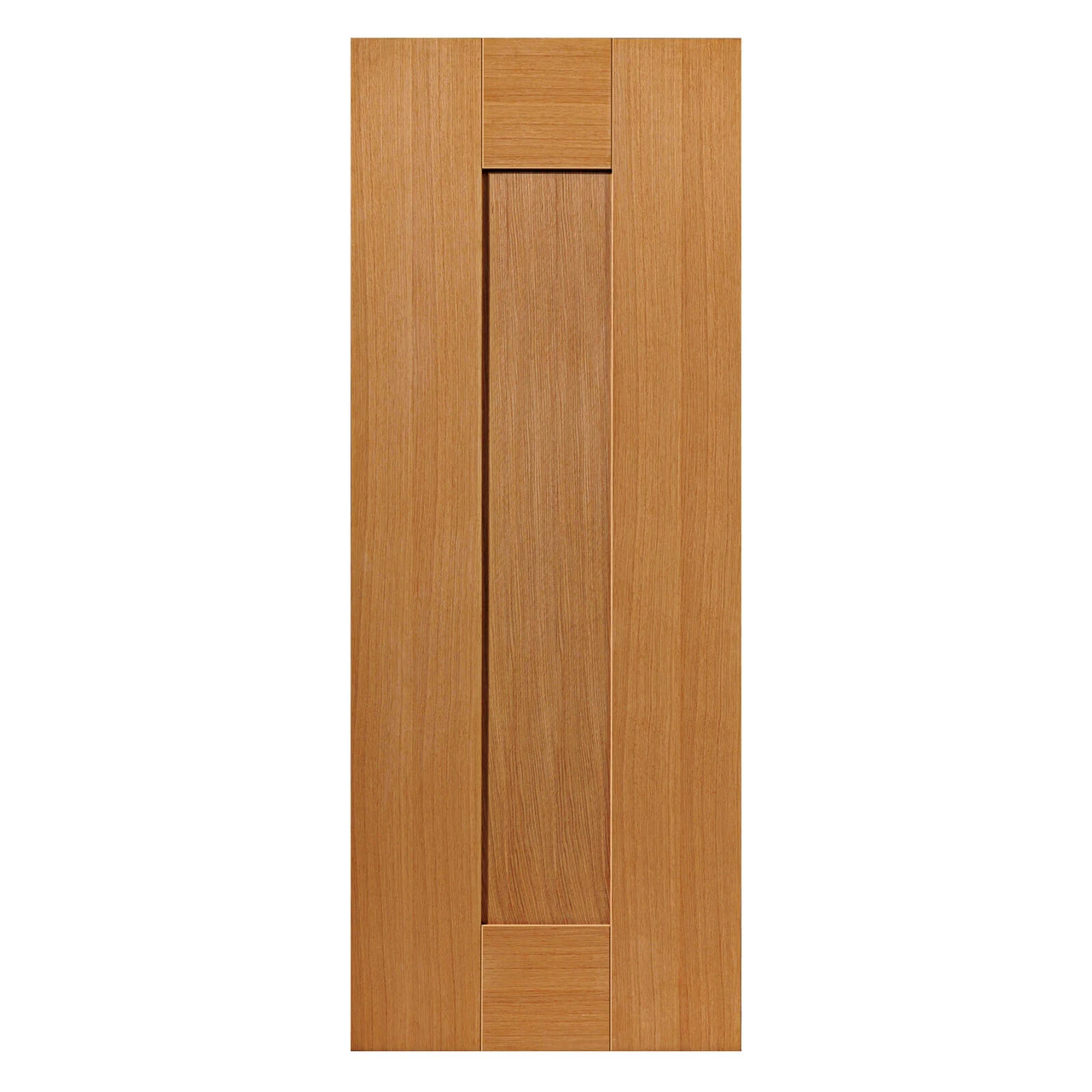 Modern oak wide shaker style internal door, supplied with full varnish finish