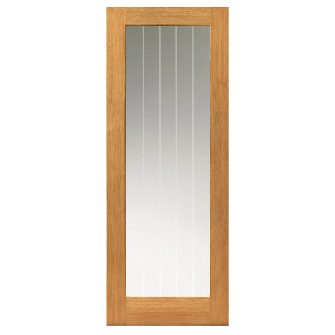 Oak glazed internal door with etched glass panel, supplied complete with varnish finish
