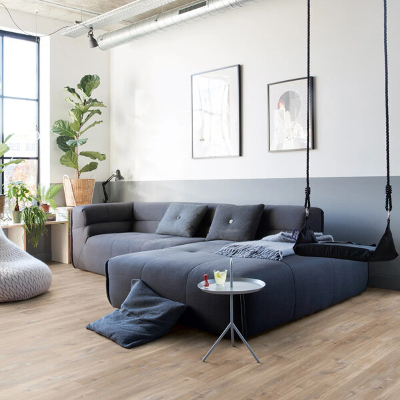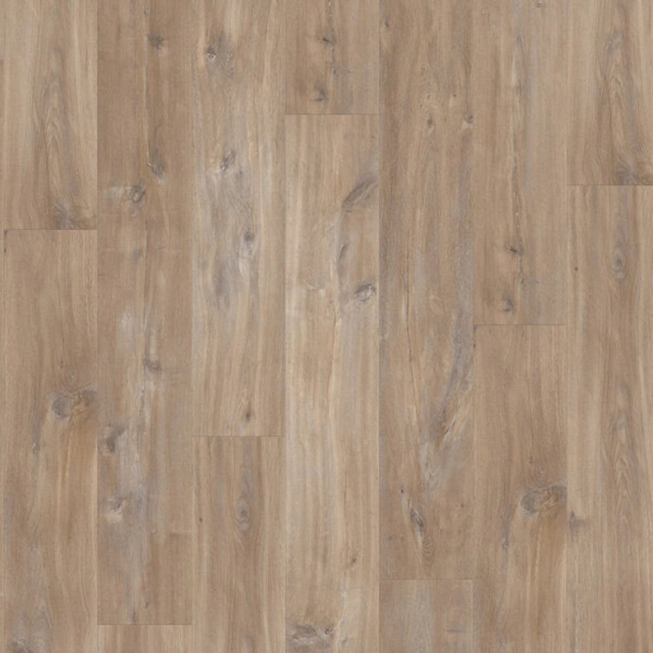 Part of Quick Step’s Balance Click range, the Canyon Oak Brown vinyl flooring offers a rustic charm to your home, with plenty of authentic-looking knots that oak is renowned for. This flooring option is also resistant to wear and tear, meaning you can rest easy knowing it will stand up to heavy traffic. Compatible with underfloor heating, this is an excellent option if you are looking for a flooring option that is resistant to wear. Featuring modern bevel grooves, this has a matt finish and is rated a Class 32 flooring, making it suitable for moderate commercial use.