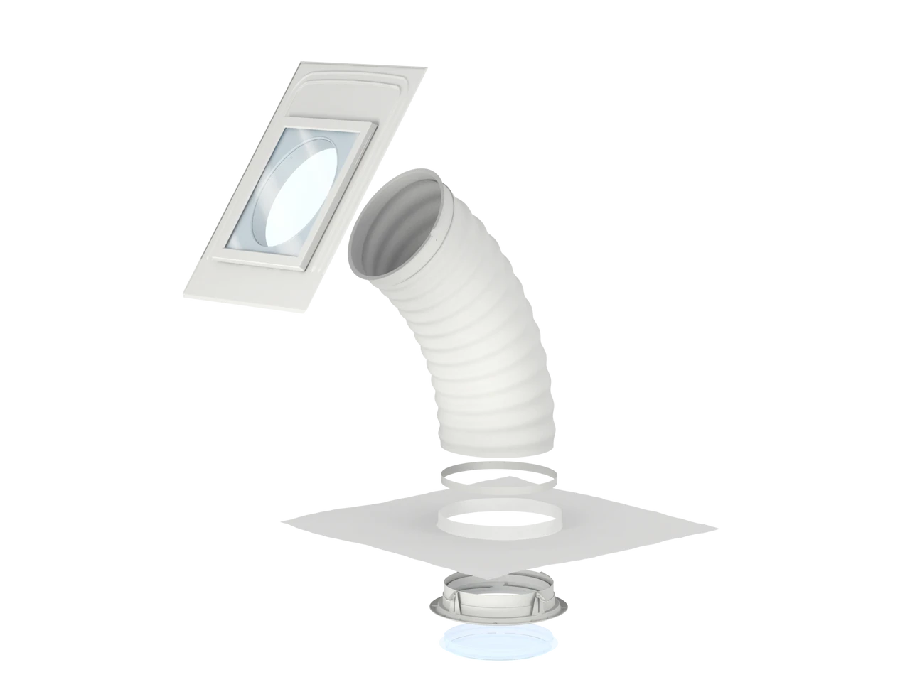 Add natural light to spaces where you never felt it was possible with VELUX sun tunnels. Perfect for windowless bathrooms, walk-in wardrobes and hallways. Flexible sun tunnels should be used when there is an object, such as a beam, restricting access. TLF 0K14 2010 is a 14″ diameter flexible tunnel for slate up to 8mm thick.