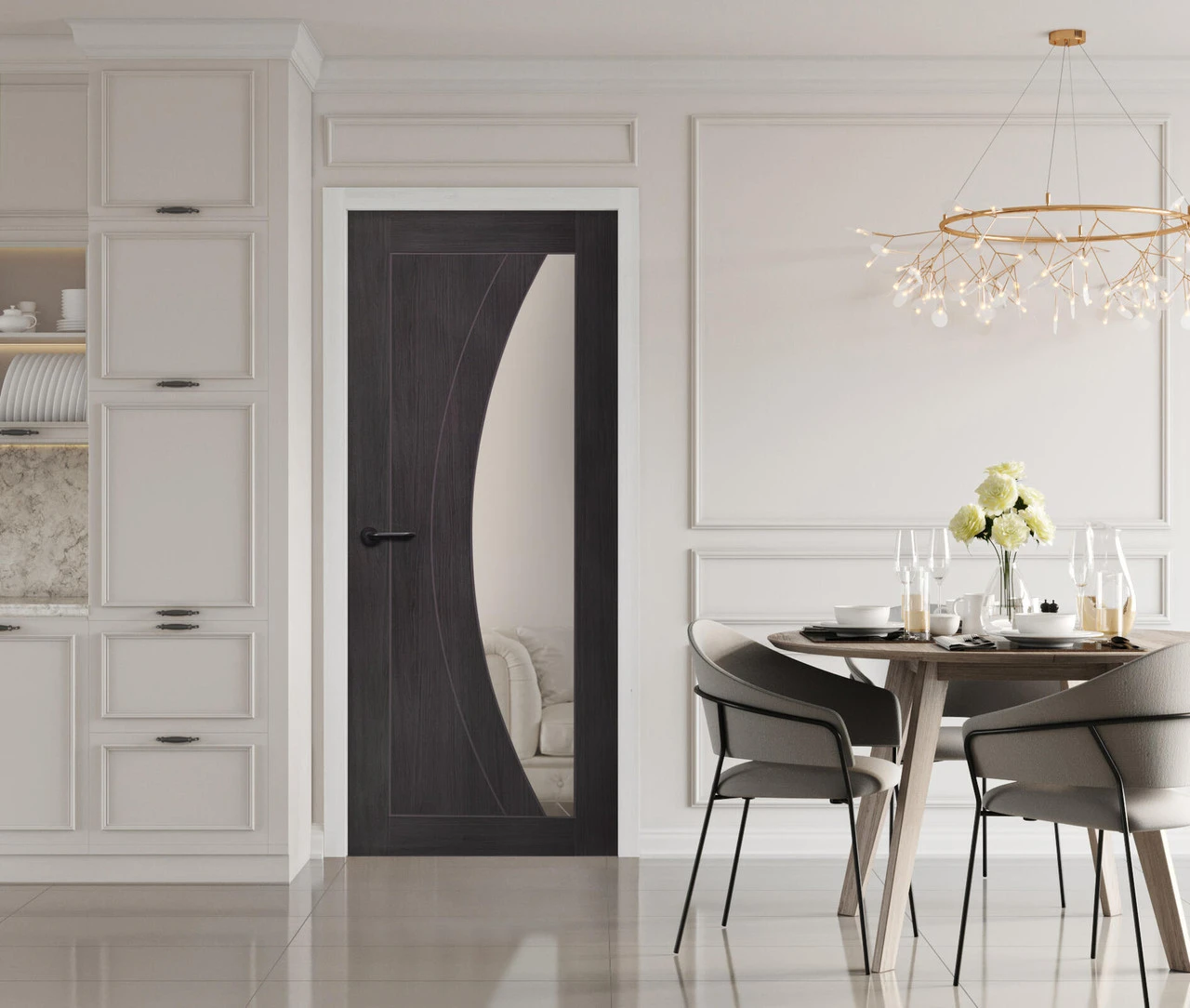 Break the mould with the Salerno. This decorative door design, with deep curved grooves, offers an exquisite aesthetic.